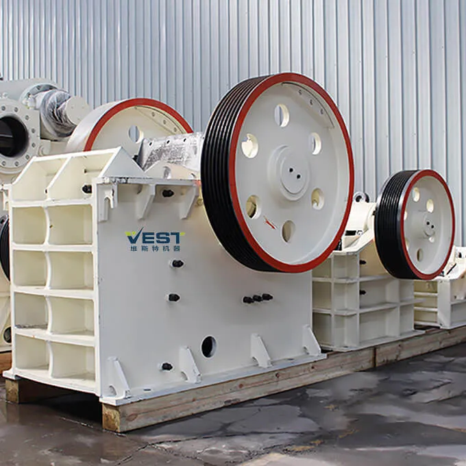 The jaw crusher is mainly composed of a frame, eccentric shaft, large pulley, flywheel, side guard plates, toggle plate, toggle plate rear seat, adjusting screw, return spring, fixed jaw plate, and movable jaw plate.