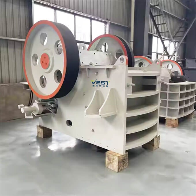 The jaw plates and side plates are made of high-manganese steel, the toggle plates are made of gray cast iron, and the eccentric shaft is made of high-strength forged steel. These components are manufactured through multiple precise machining processes, heat treatment, and non-destructive testing, ensuring sufficient rigidity and strength.